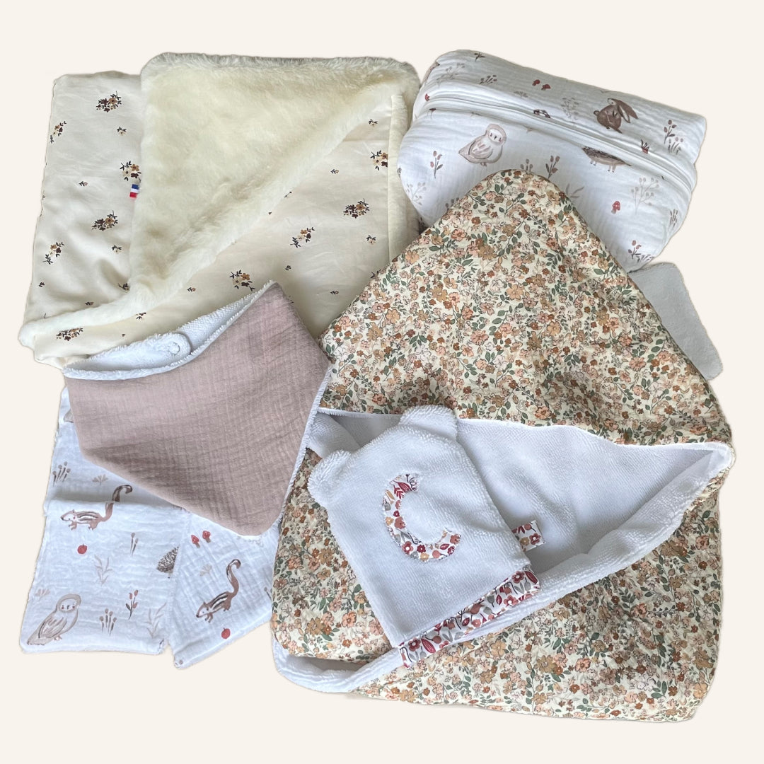 Trousse de toilette faite main en tissus Oeko-Tex, doublée d’éponge super absorbante....