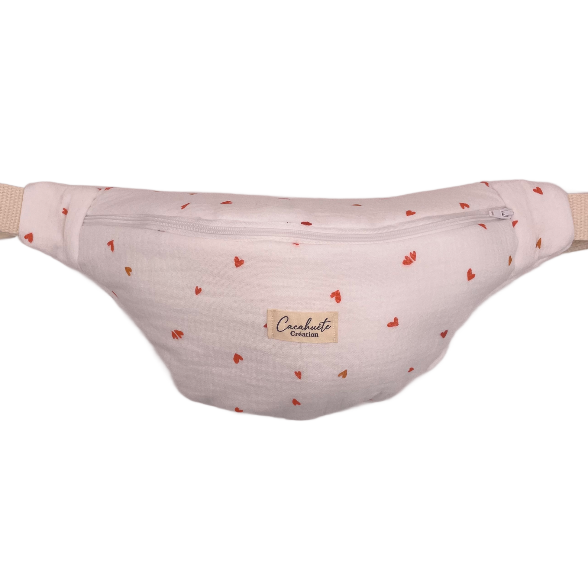 Nos sacs banane, confectionnés en tissu Oeko-Tex, possèdent une sangle ajustable à clip pour un port confortable.
