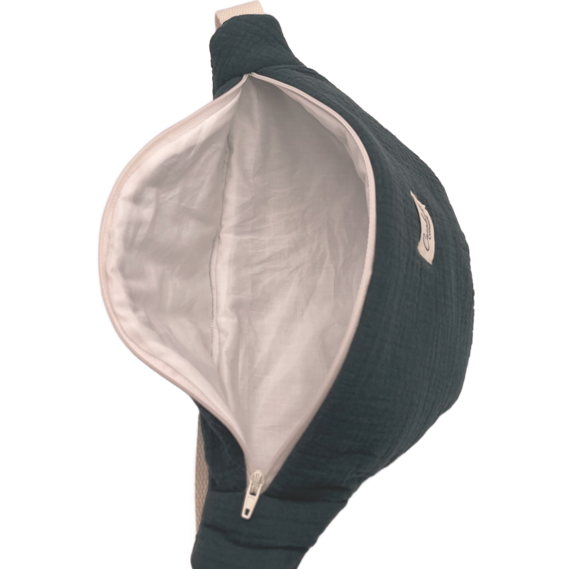 Nos sacs banane, confectionnés en tissu Oeko-Tex, possèdent une sangle ajustable à clip pour un port confortable.