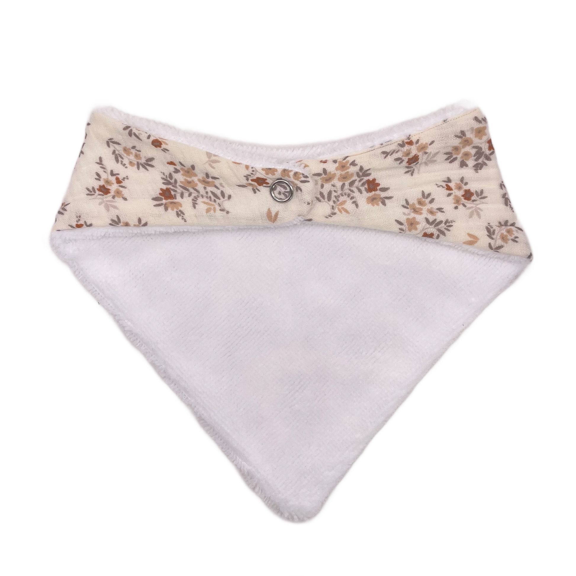 Confectionné en tissu Oeko-Tex certifié, il allie douceur et responsabilité. Son intérieur en éponge ultra-absorbante protège efficacement les vêtements de bébé, tandis que sa fermeture par bouton pression assure un ajustement parfait et sécurisé. Pratique, confortable et fabriqué avec soin, ce bavoir bandana est l'accessoire indispensable pour les repas en toute sérénité.